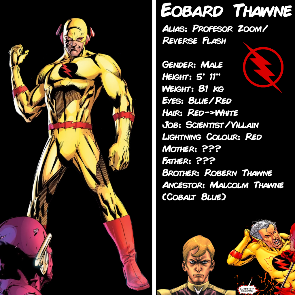 Eobard Thawne is a professor of Speedforce and Speedster from the future. At the same time he is also a Super Fanboy of Barry Allen the second flash. He is so obsessed with the flash that he wanted to become a speedster. He experimented the speedforce and gained his power.